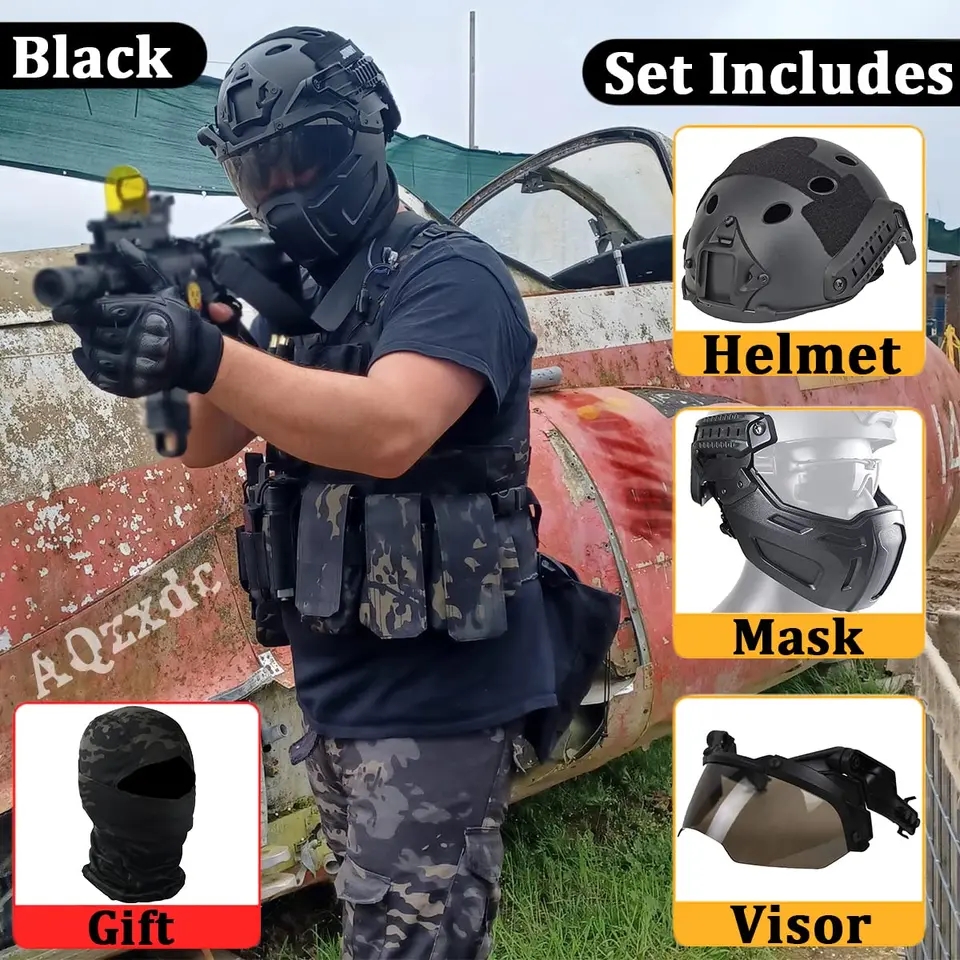 Conjunto de casco rápido táctico con protección Airsoft, máscara de media cara y visera para BB Gun Paintball, juego militar CS.